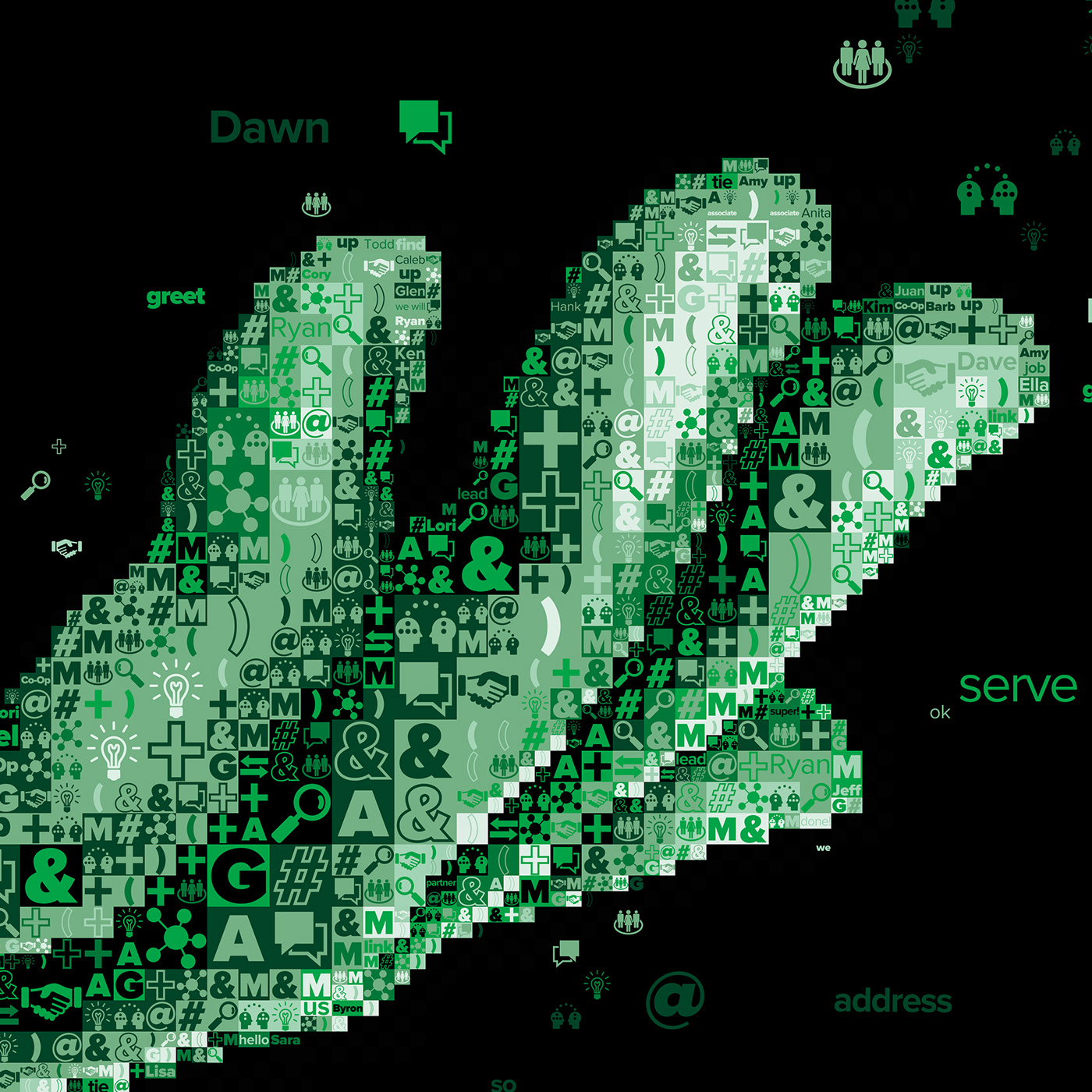10 hand gestures have been chosen by BrandJuice to symbolise 10 different sectors and areas of focus. I had to transform these hand gestures to mosaics made with icons, words and the MGMA letters.