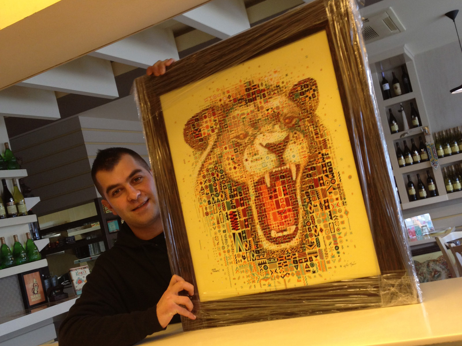Kozi asked for an image of a lion in his shop, Dimitra made the small Ndebele inspired doodles, and Charis tsevisized it all up to create The Roaring Lion and His Serene Lioness.