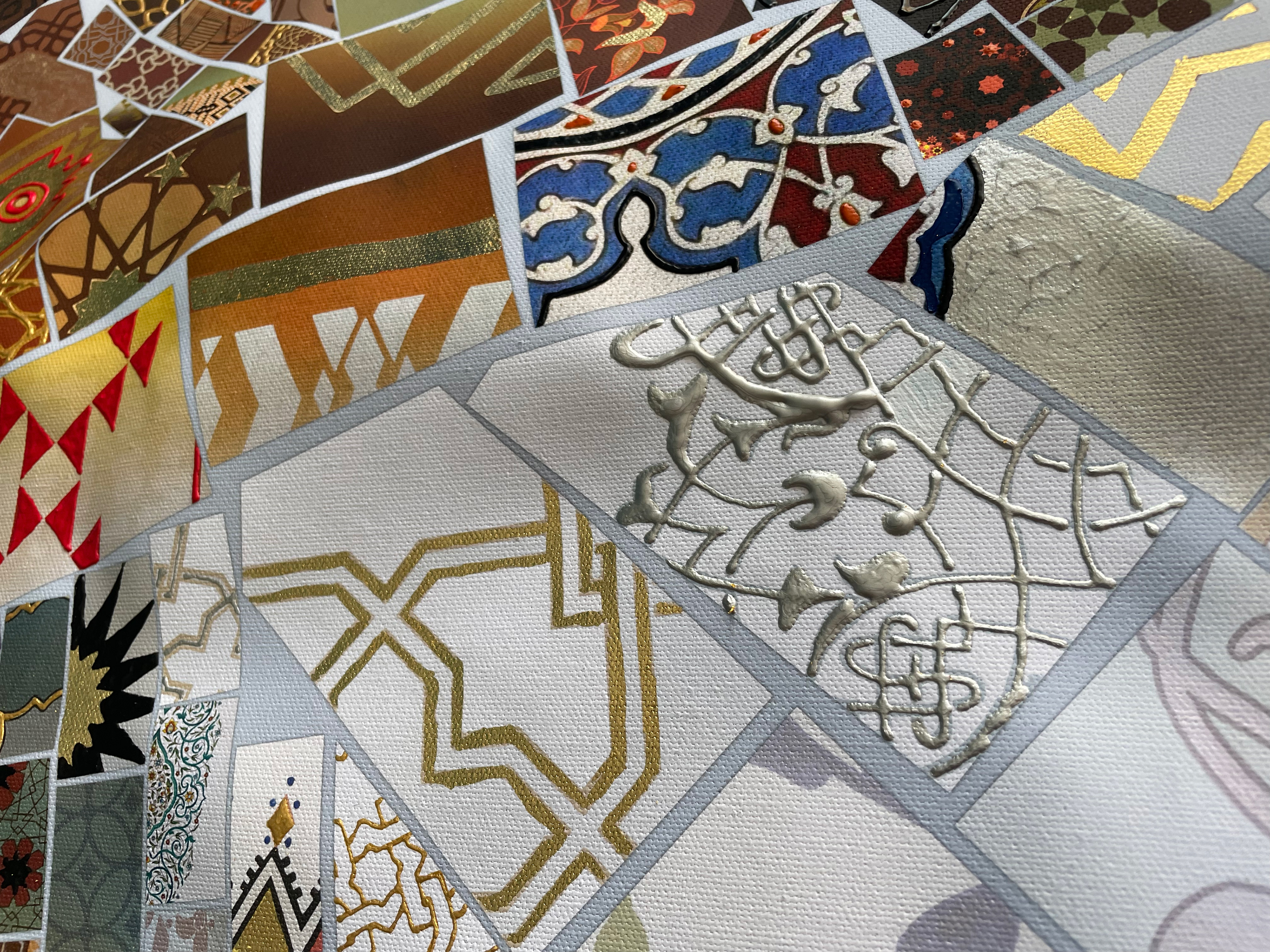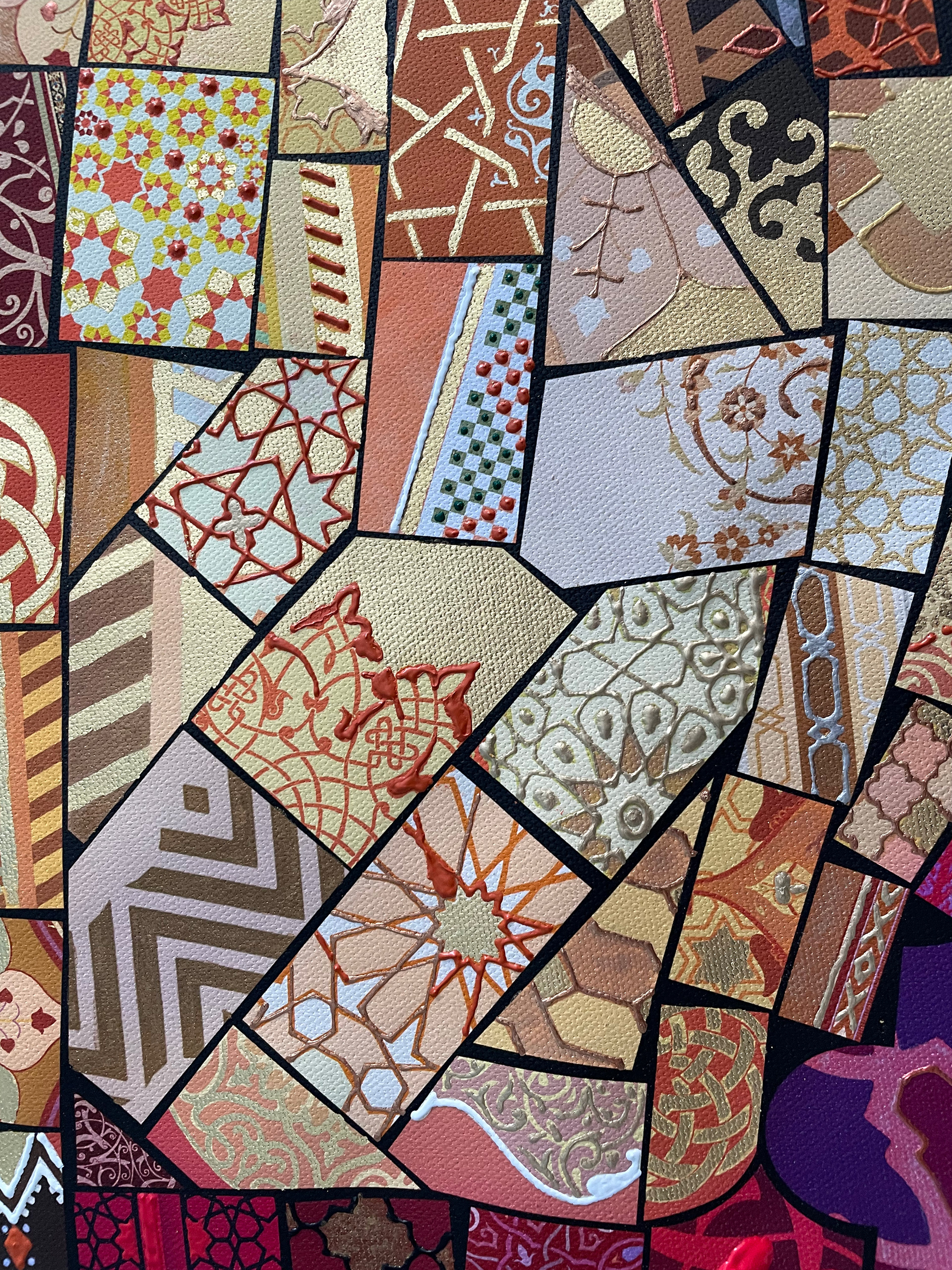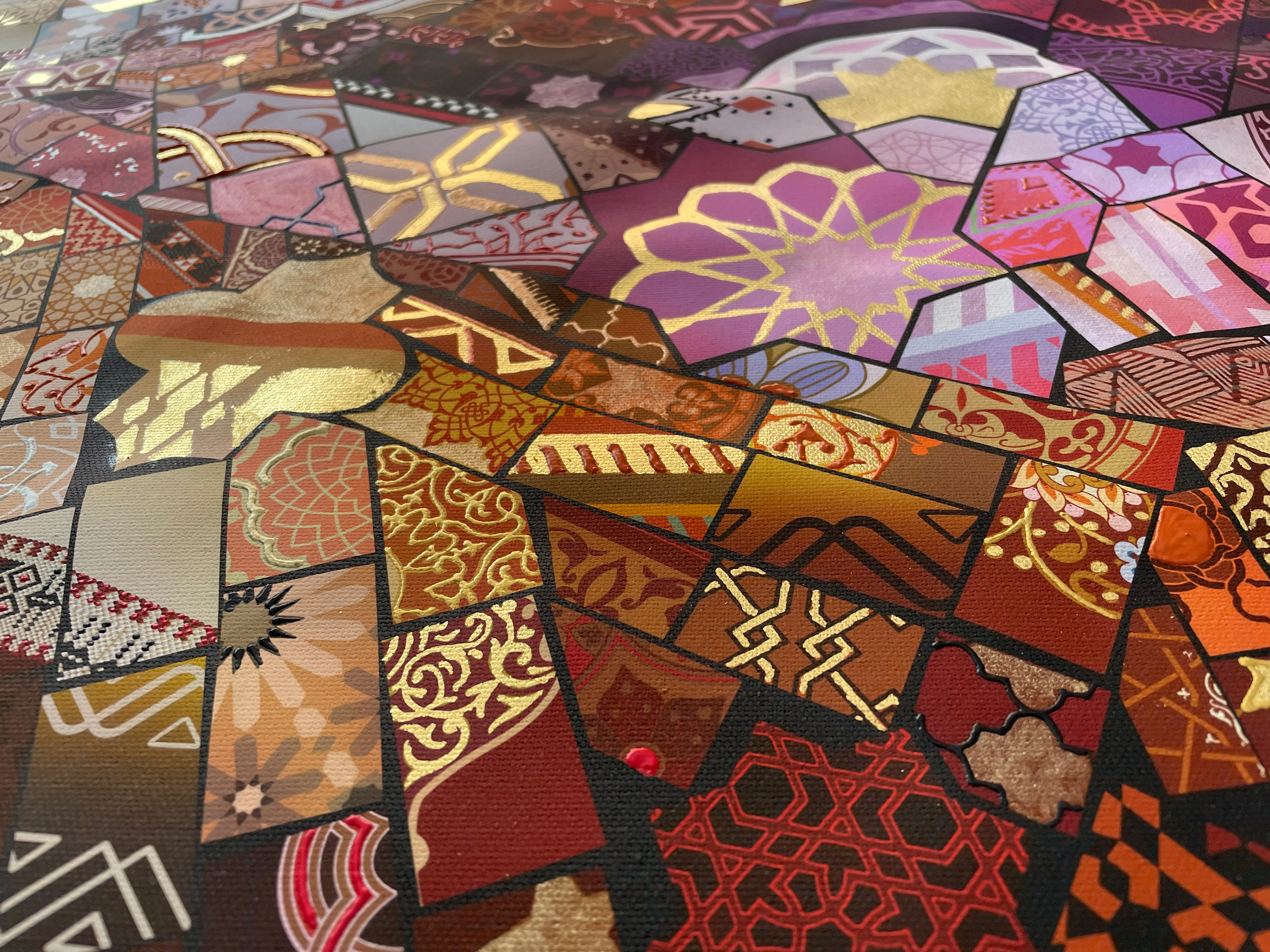 Commissioned to contribute to the exhibition, I created a King's portrait and three animal paintings. Inspired by the intricacies of Arabic patterns, I delved into an extended exploration, crafting and curating a collection of mesmerizing patterns. For the animal mosaics, I chose to portray the grace of a horse, the majesty of a falcon, and the elegance of a gazelle.