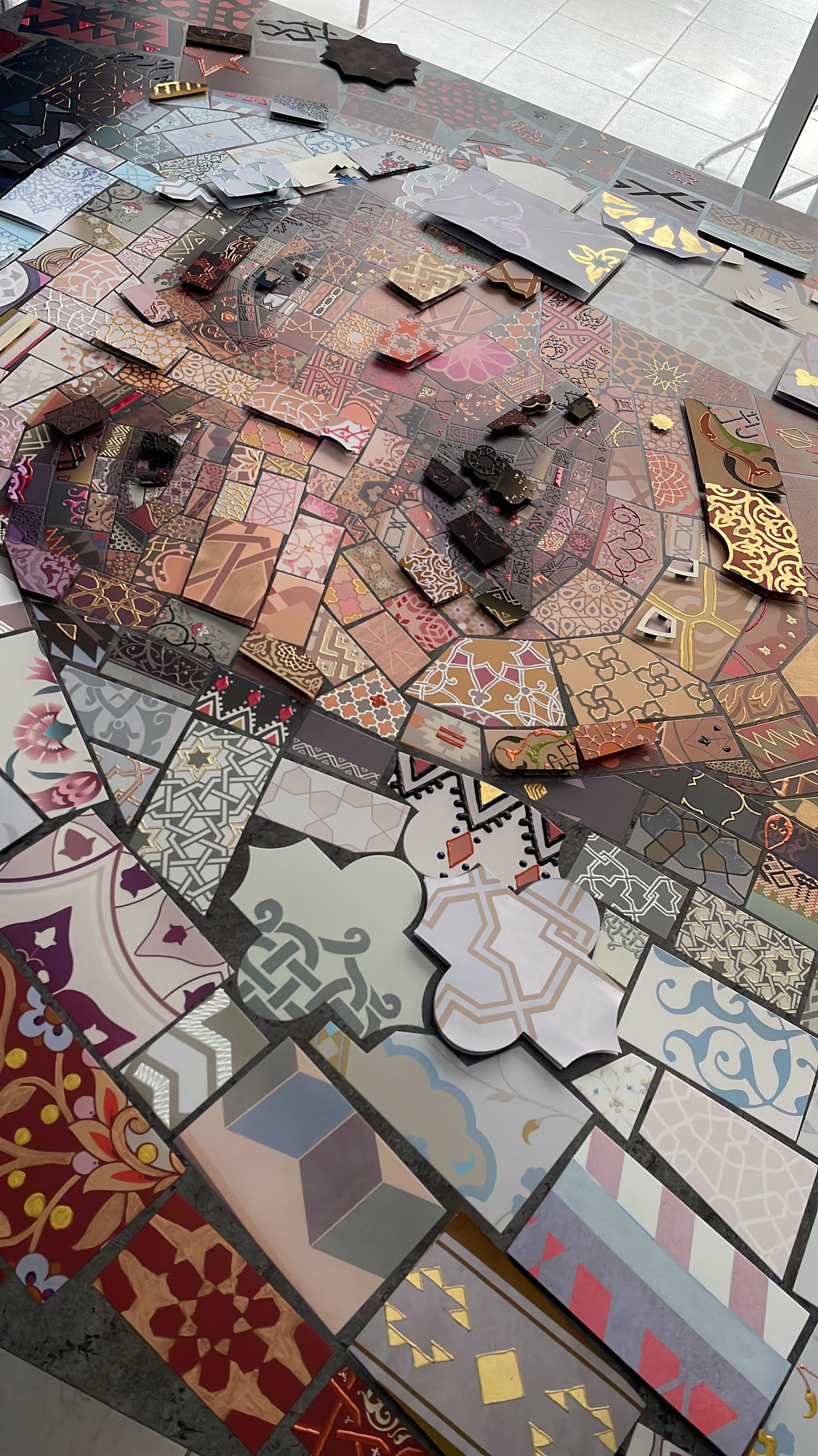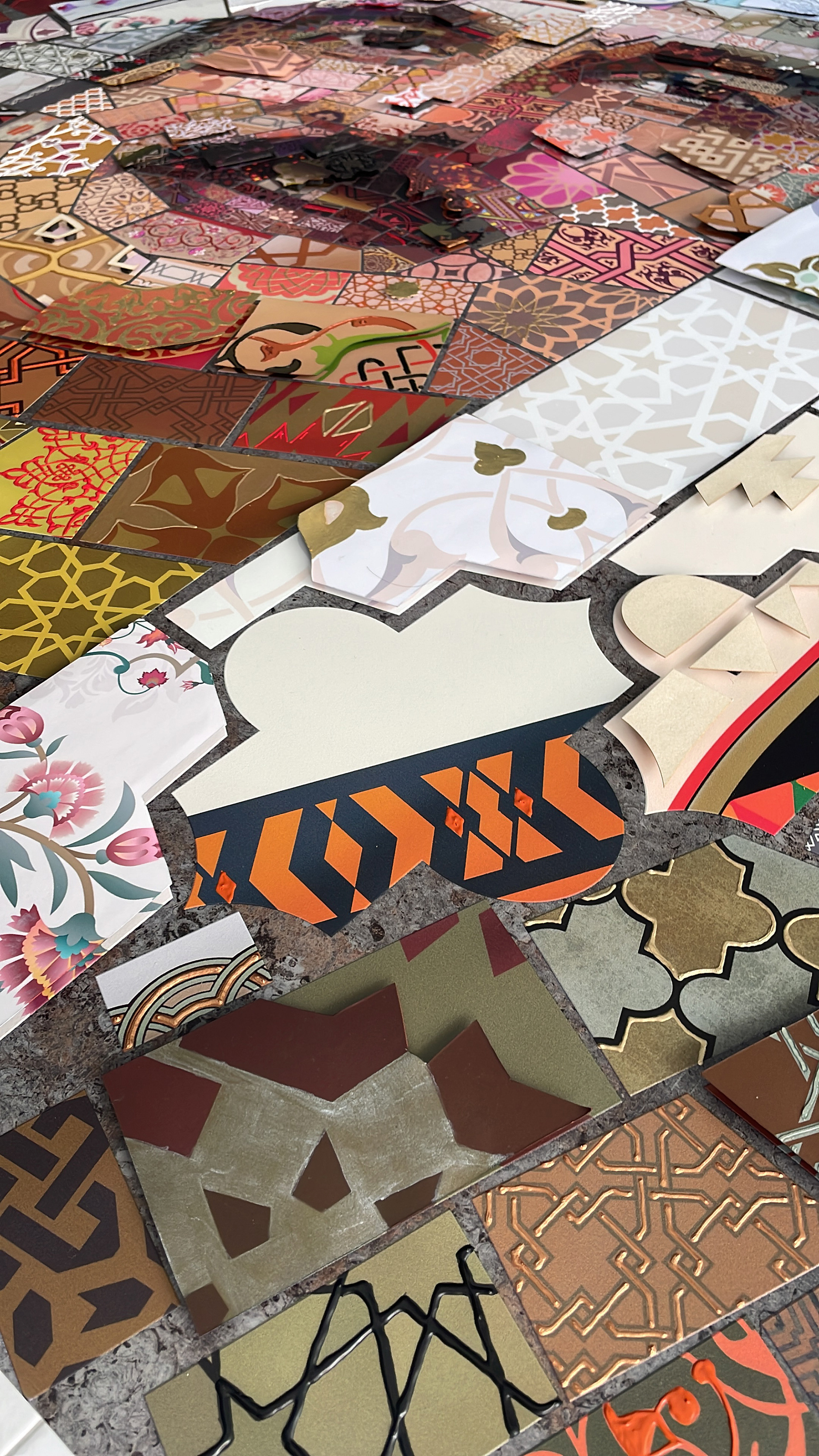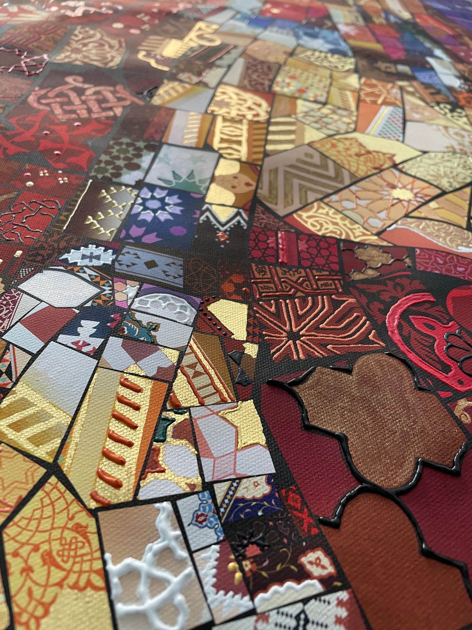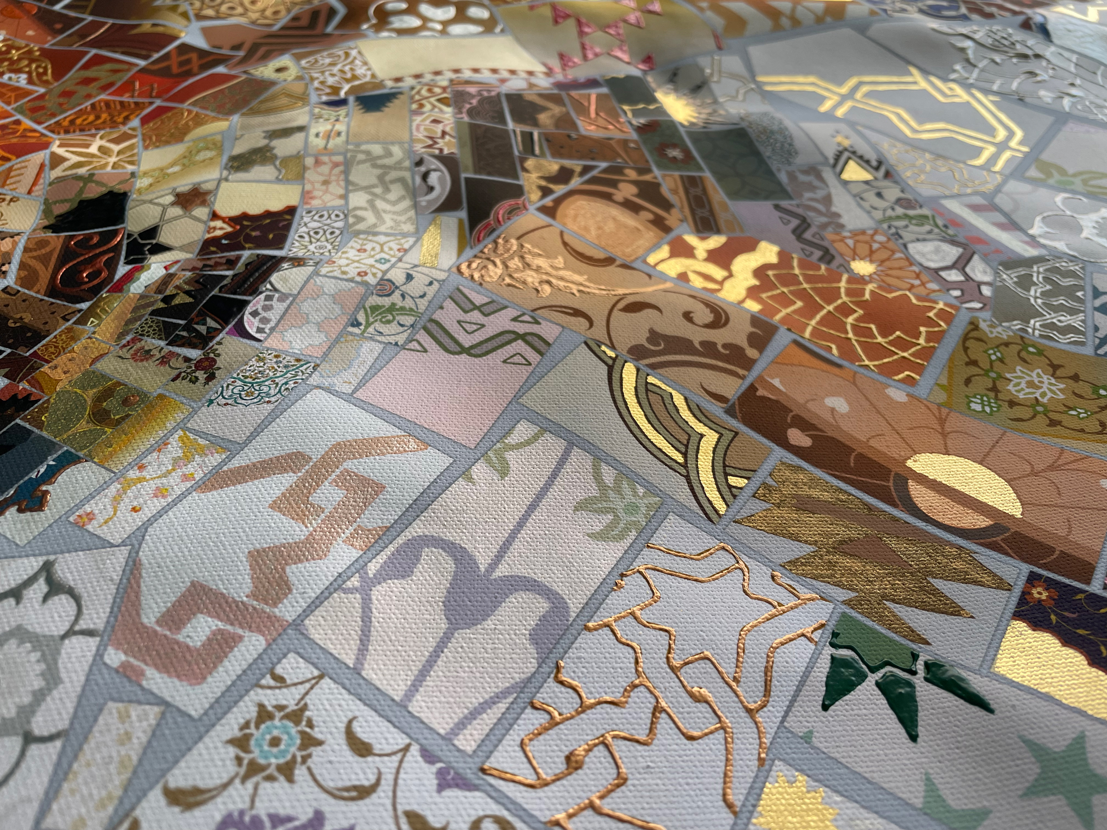 Commissioned to contribute to the exhibition, I created a King's portrait and three animal paintings. Inspired by the intricacies of Arabic patterns, I delved into an extended exploration, crafting and curating a collection of mesmerizing patterns. For the animal mosaics, I chose to portray the grace of a horse, the majesty of a falcon, and the elegance of a gazelle.