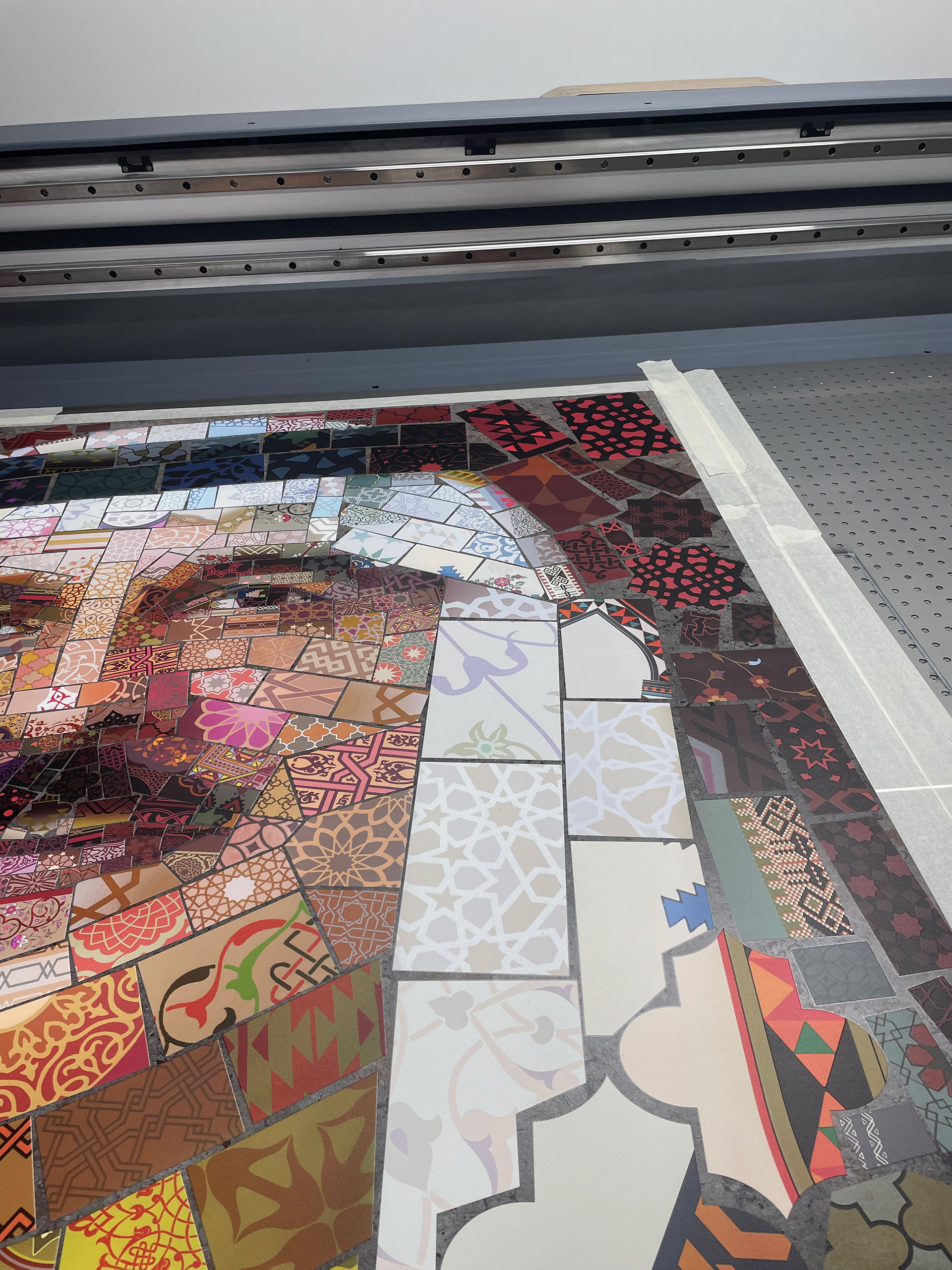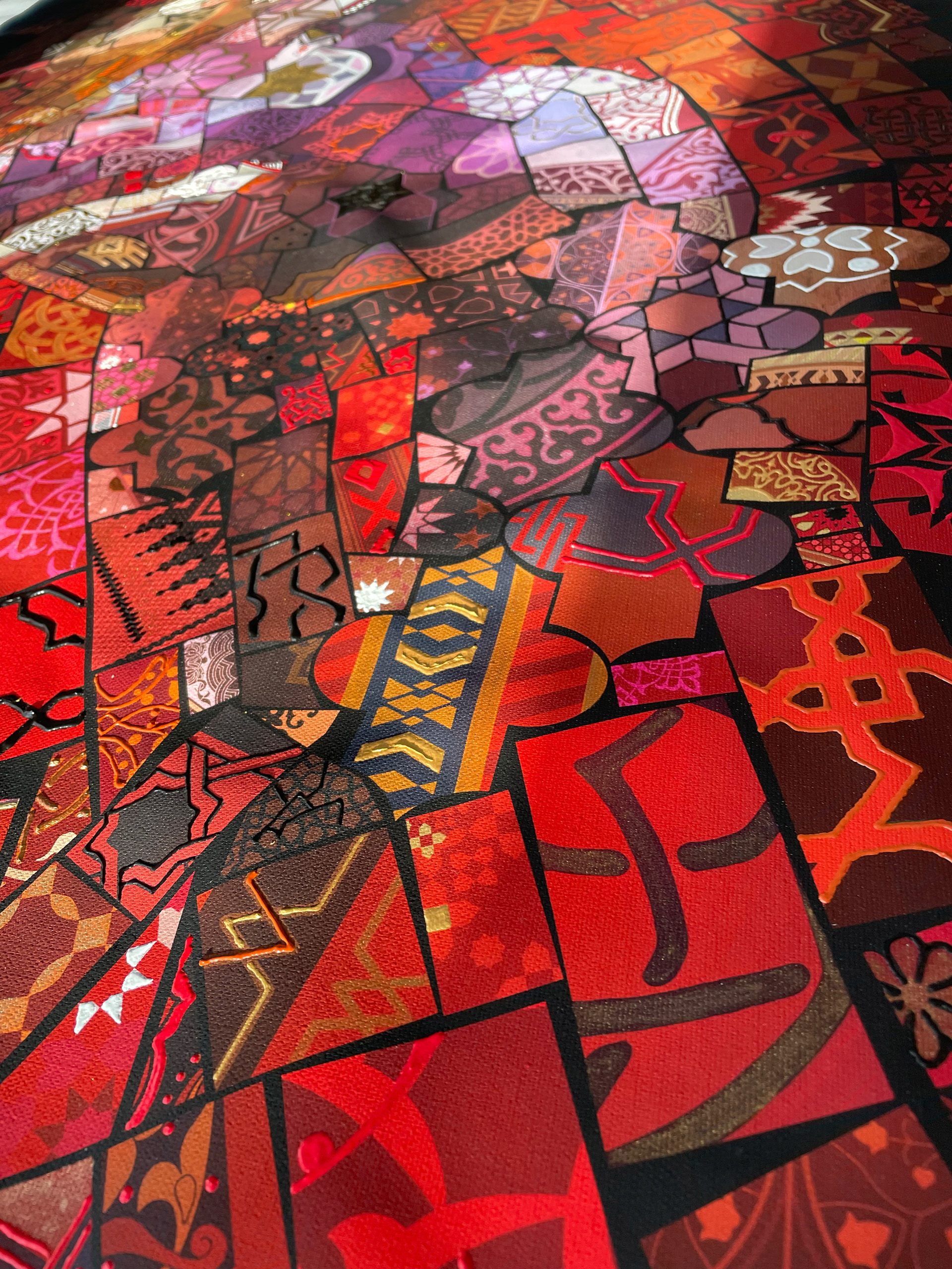 It began with a meticulous Giclee 12-color printing of my digital mosaics on 100% cotton canvas, laying the foundation for a vibrant canvas that would become a testament to the wild's untamed beauty. Following this, my wife, inspired by the vivid hues and intricate details, embarked on the hands-on process of painting tile by tile.