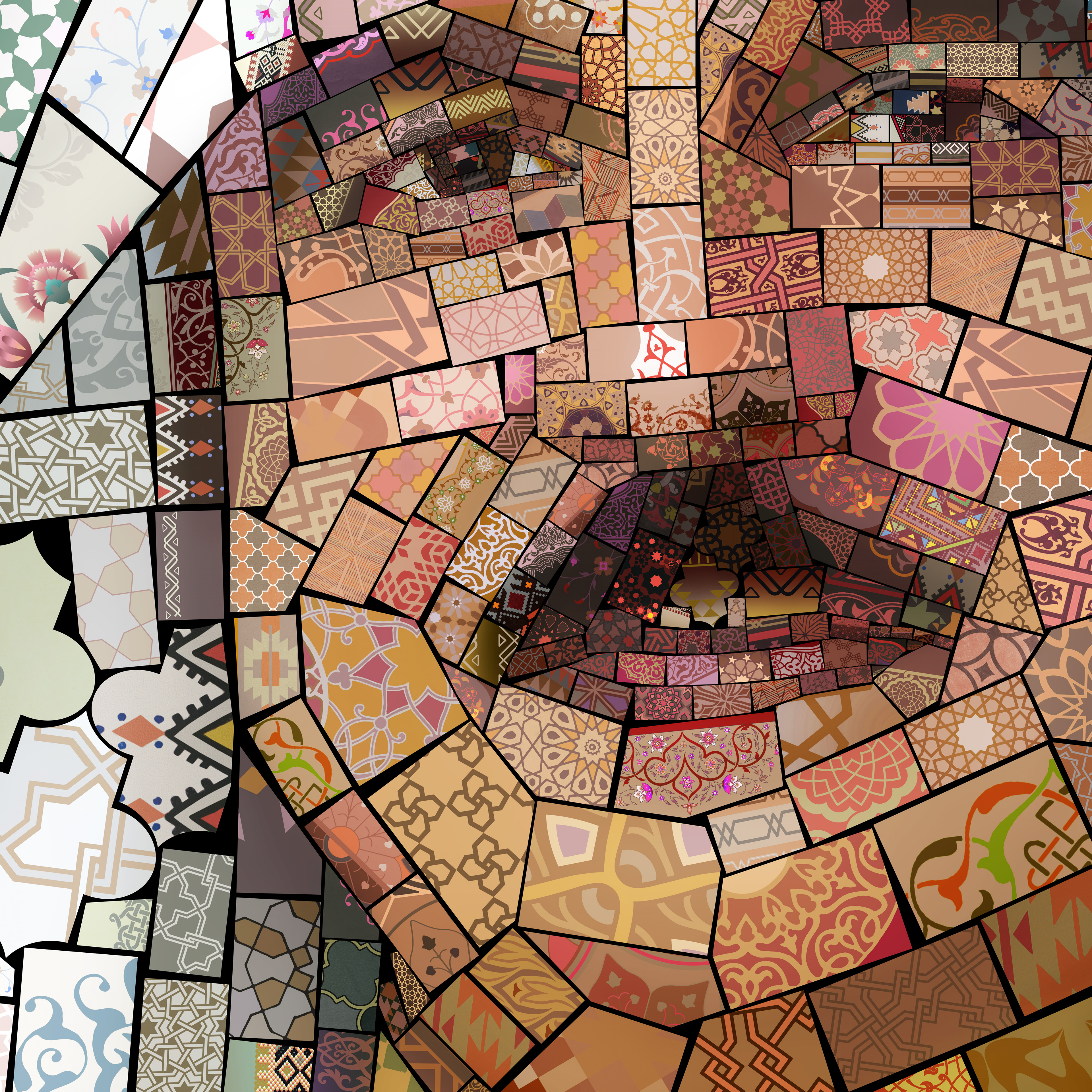 Creating His Majesty's portrait required developing an entirely new approach to digital mosaics. Traditional portraiture in royal collections often emphasizes individual character and presence. Islamic artistic traditions, however, tend toward geometric abstraction and pattern. The challenge was creating a work that honored both traditions while remaining authentically contemporary.