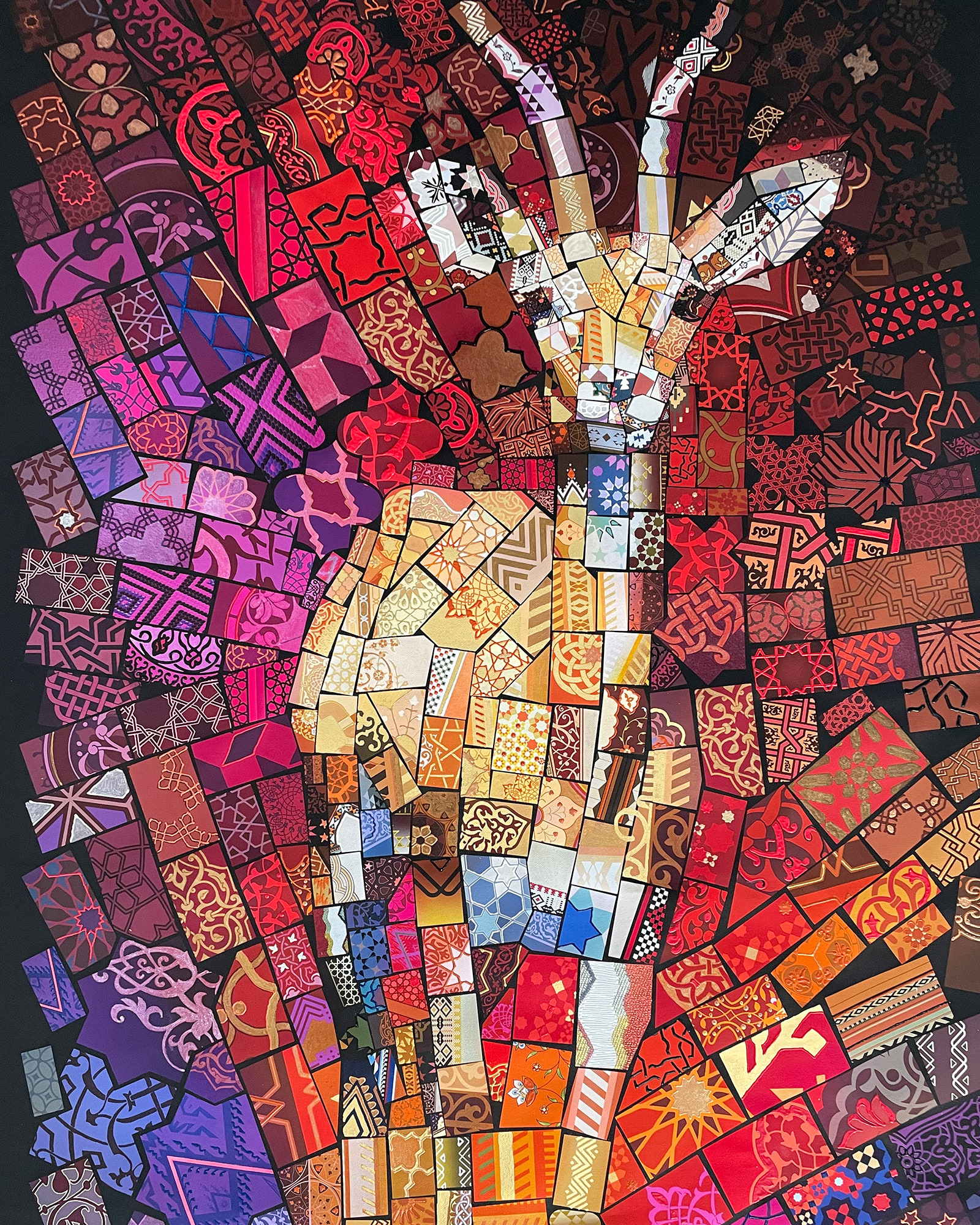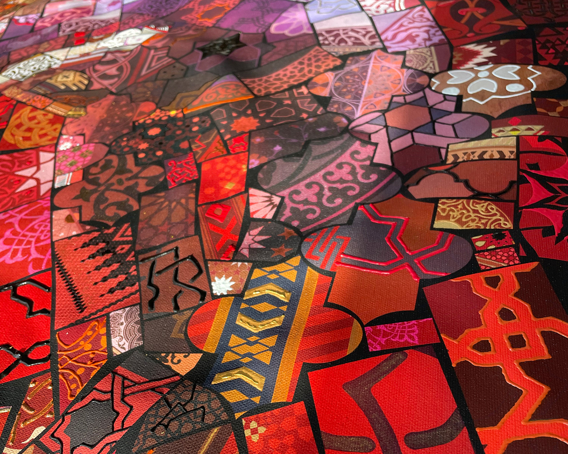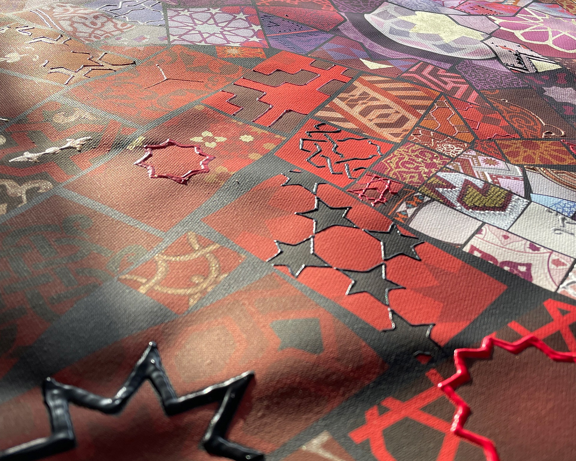 Each animal was constructed using Giclée 12-color printing on 100% cotton canvas, transformed through hand-painting that honored both the individual character of each creature and the mathematical precision of Islamic geometric design. The result was a series that felt simultaneously contemporary and timeless, digital and handcrafted.