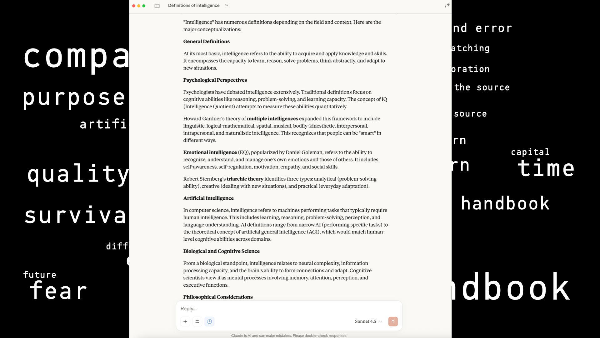 Covers multiple perspectives: historical evolution, psychological theories, modern approaches. Includes emerging concepts: collective intelligence, ecological intelligence, digital intelligence. It's a comprehensive overview of how definitions have evolved over time.