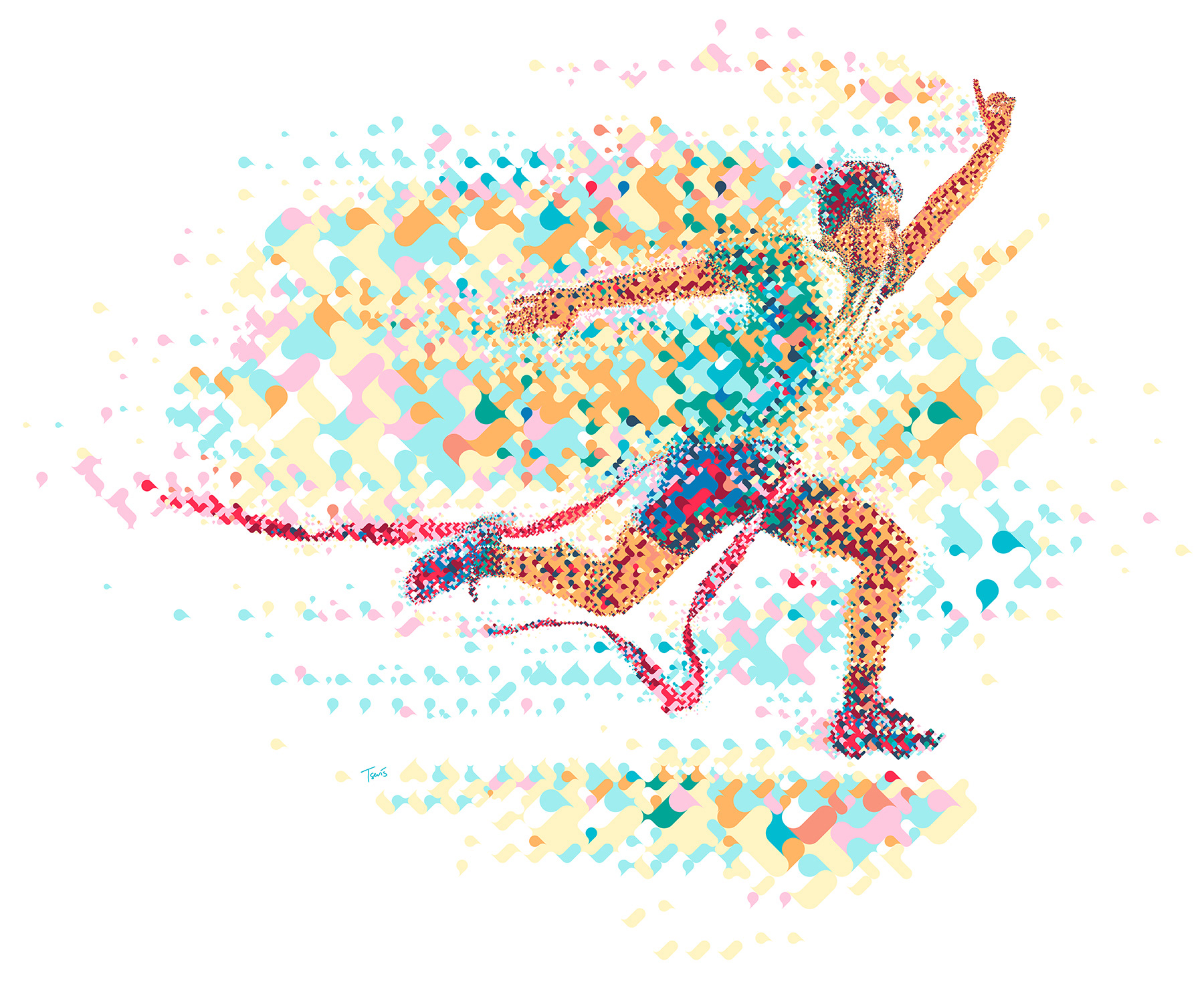 Mosaic illustrations showing a winning athlete created for Dialogue magazine (UK) for an article titled "From Elite sports stars to business leaders".