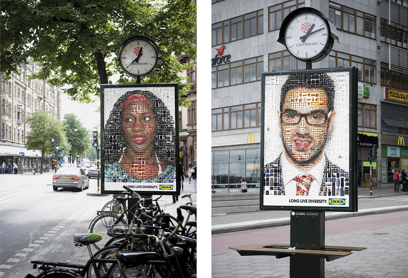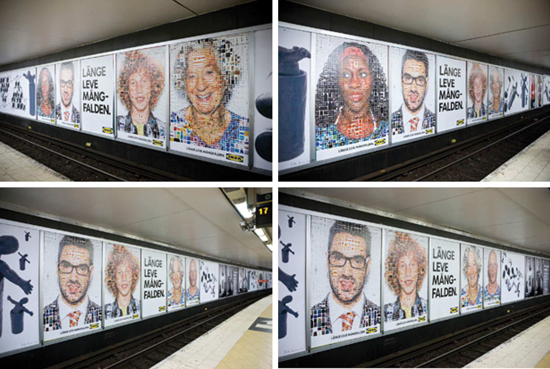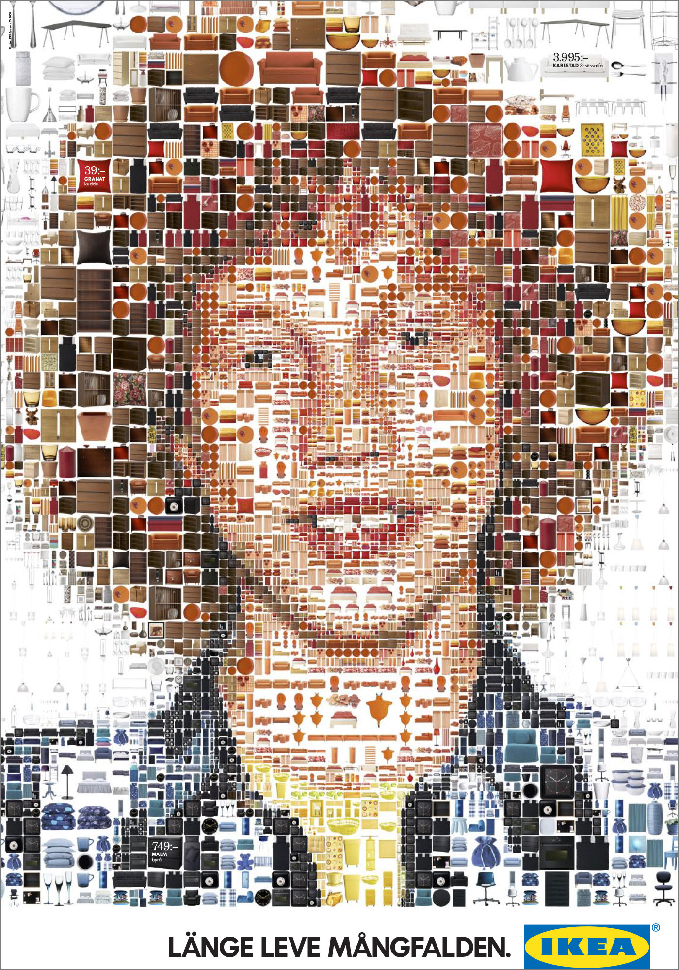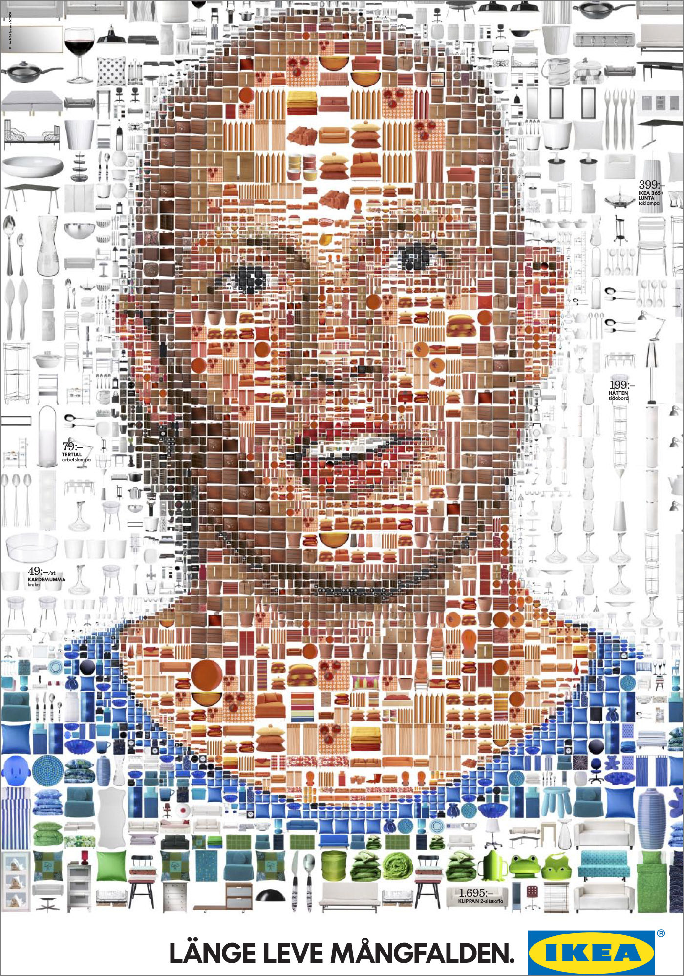 A series of mosaic portrait of people representing social diversity made out of thousands of IKEA products. Created for the "Long Live Diversity" campaign for IKEA Sweden.