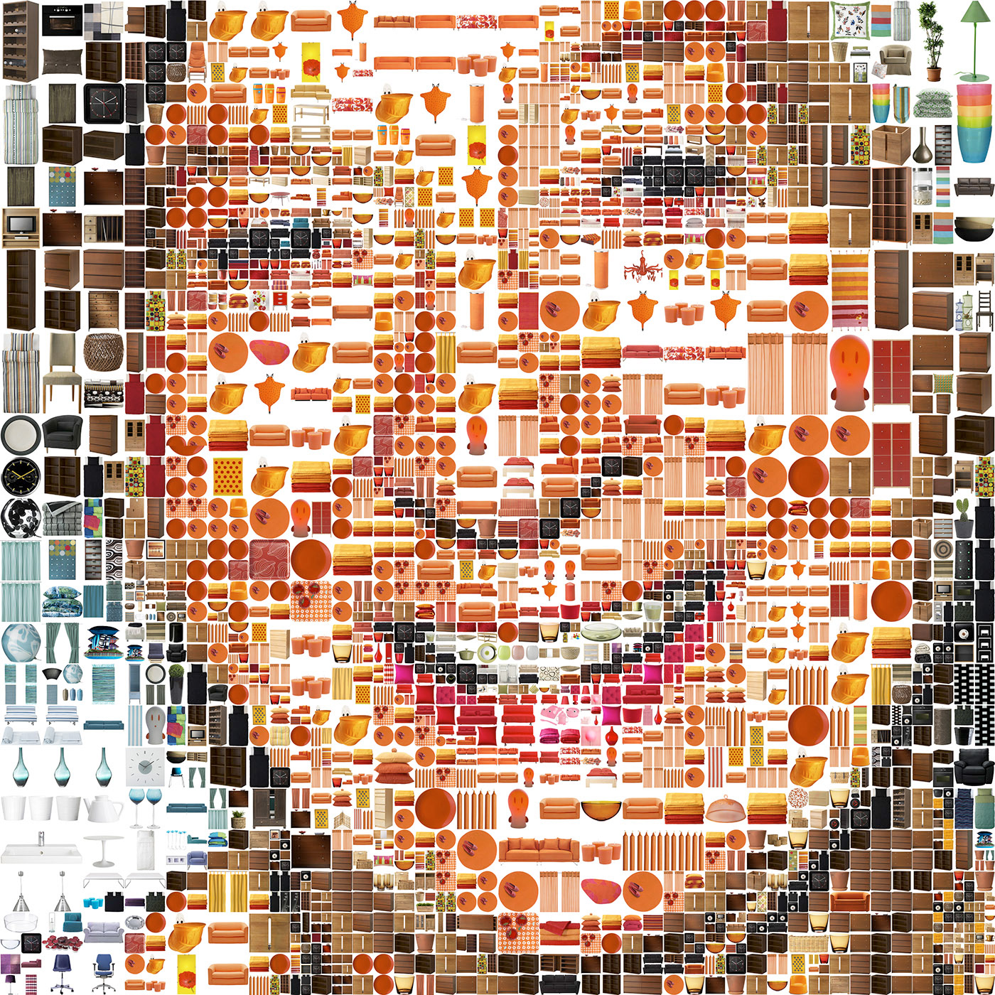 5 mosaic portraits made out of thousands of IKEA products for the Swedish Summer and Autumn campaign of IKEA.