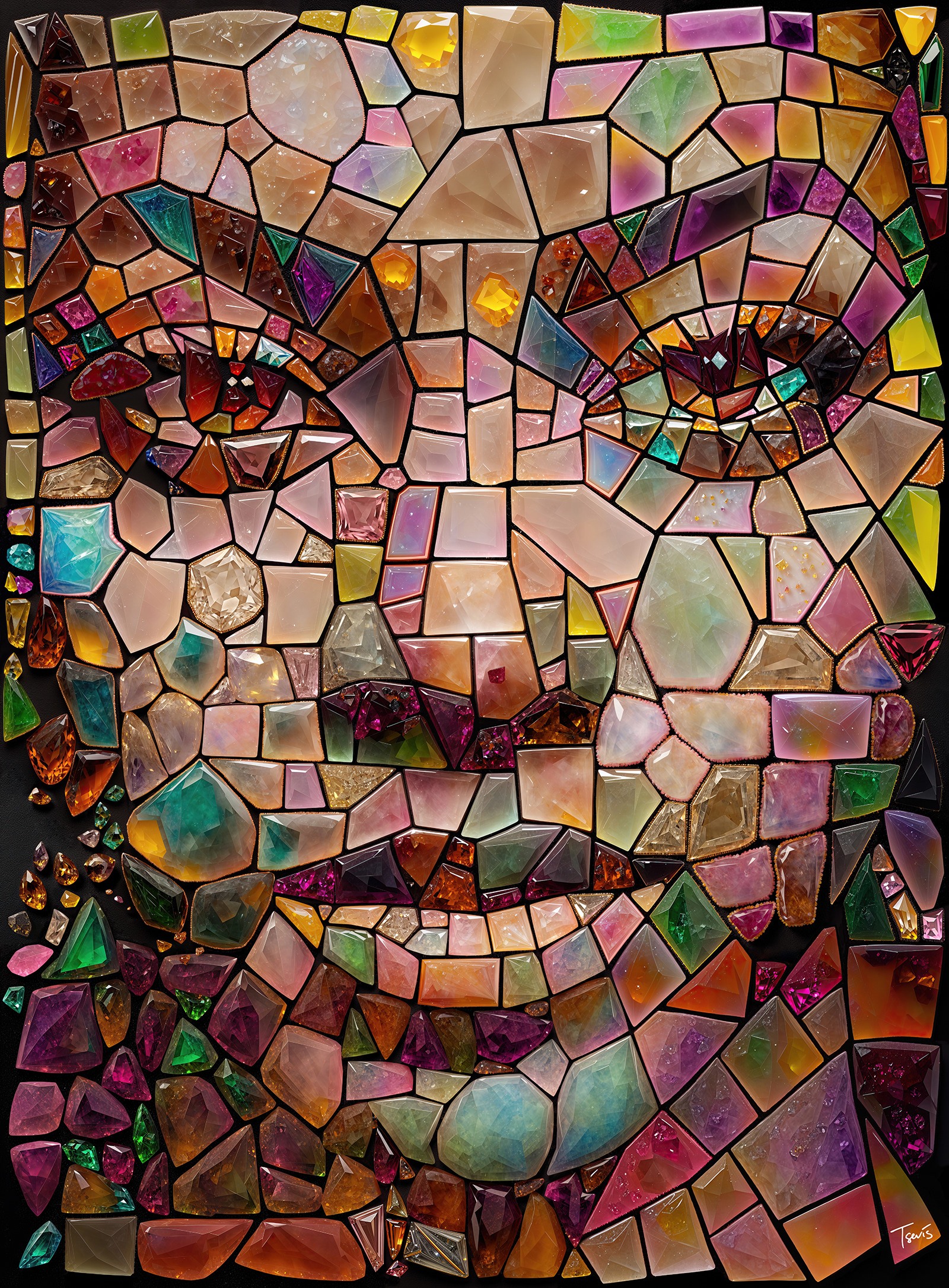Each digital mosaic piece mirrors the radiant splendor of stained glass art, offering viewers a captivating visual experience that transcends the boundaries between traditional art forms and contemporary digital expression.