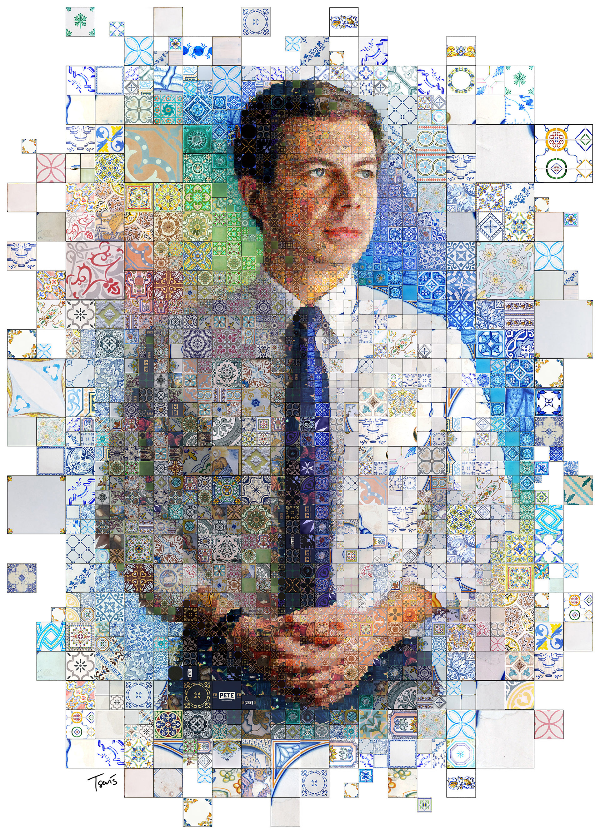 Throughout the years, I have been fortunate to see my work resonate with audiences. I recall my mosaics becoming central to grassroots movements like MoveOn or Democrats Abroad during Obama’s 2008 and 2012 campaigns. In 2020, I supported Mayor Pete Buttigieg, whom I consider one of the most promising political talents of our time. Pete has engaged deeply with the core of politics, advocating for structural reforms to make the U.S. political system functional. From Supreme Court reforms to Senate restructuring and other ideas to improve candidate selection, he has shown practical competence when put to the test.