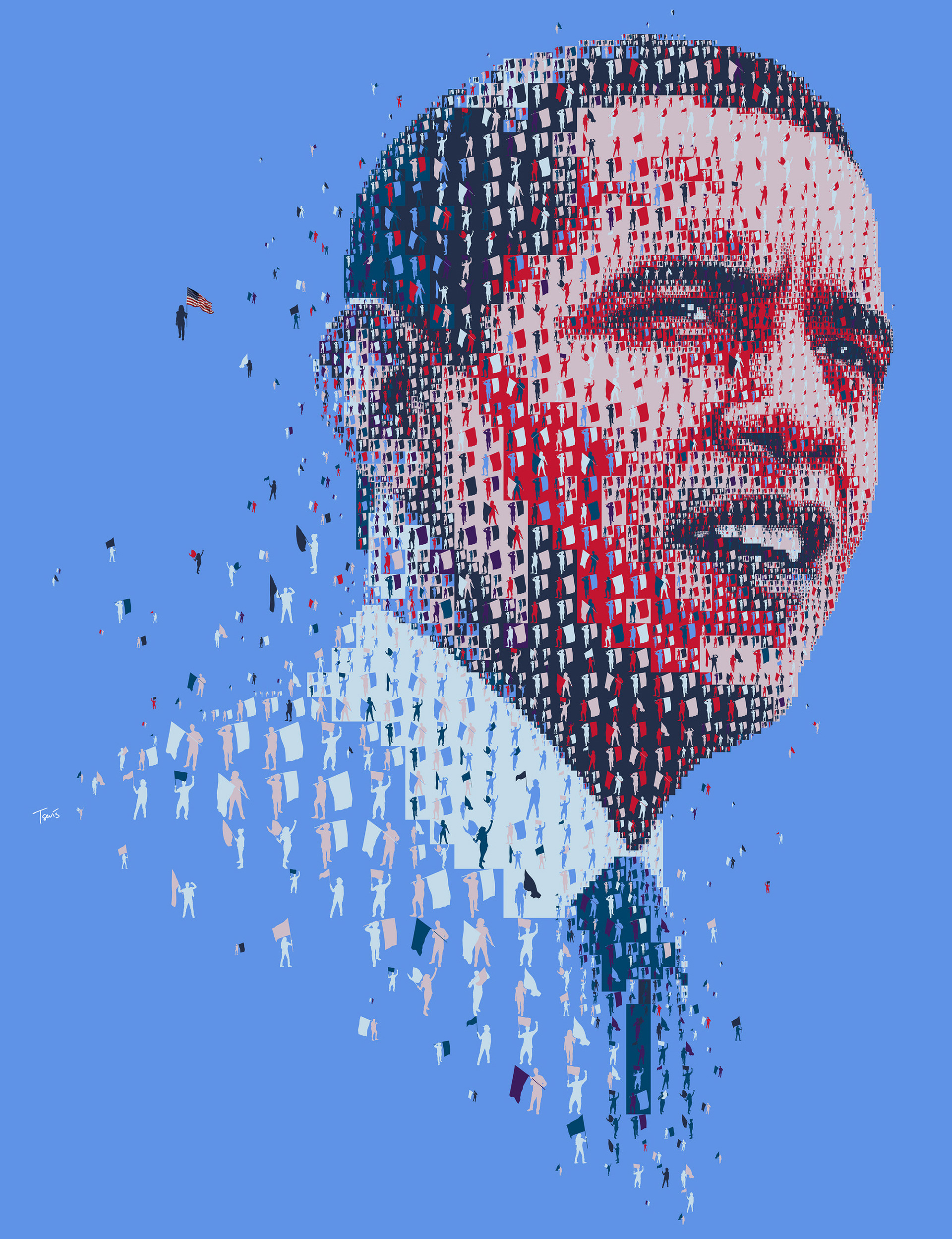 If casting a vote and choosing a political stance is challenging, selecting the figures I illustrate is just as complex. There are easier choices, like Nelson Mandela, but often the choices are more difficult and rarely absolute. Sometimes, I’ve created portraits of political figures for clients, such as a commission for The Hollywood Reporter to create a caricature of Donald Trump, whom I view as a symbol of what is wrong with contemporary politics. While the article was critical, I tried to approach his image with humor, reflecting the absurdity but avoiding hate.
