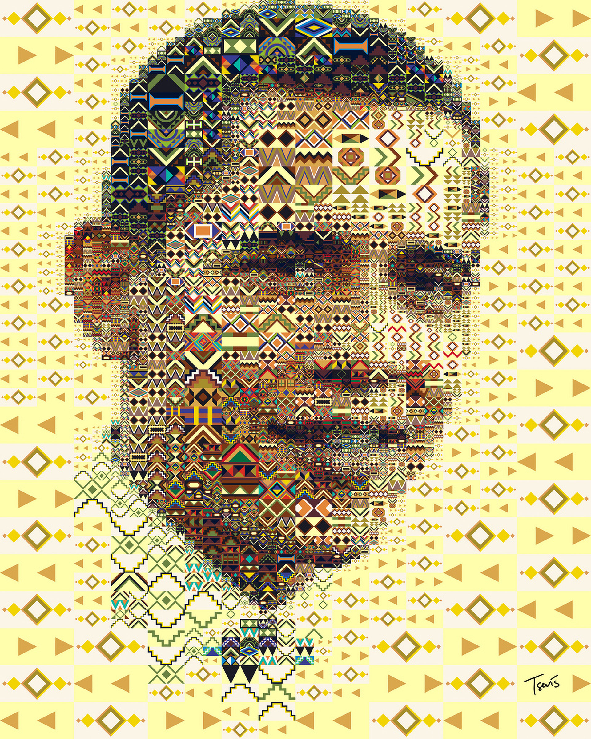 My aim is to capture aspects of each leader’s personality, pieces of their identity, history, and work. The mosaic visual language is particularly suited to this. People are multifaceted, made up of countless “tiles” that define them. I find it fascinating to gather and arrange these pieces to create a positive image.