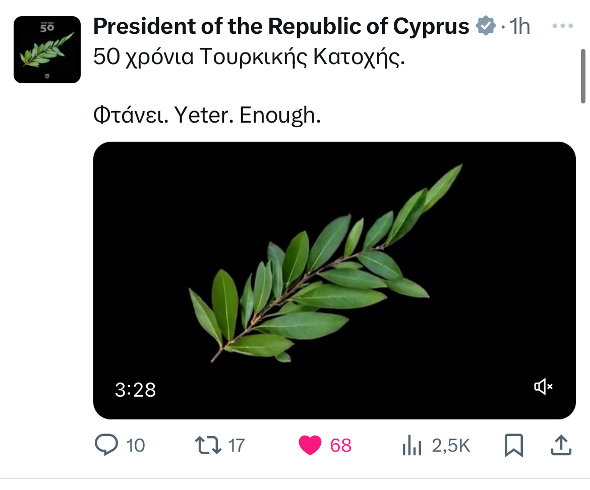 The President of Cyprus and the Prime Minister of Greece spoke with simple, beautiful, moving, and sincere words. Their references were to history, poetry, culture, and life.