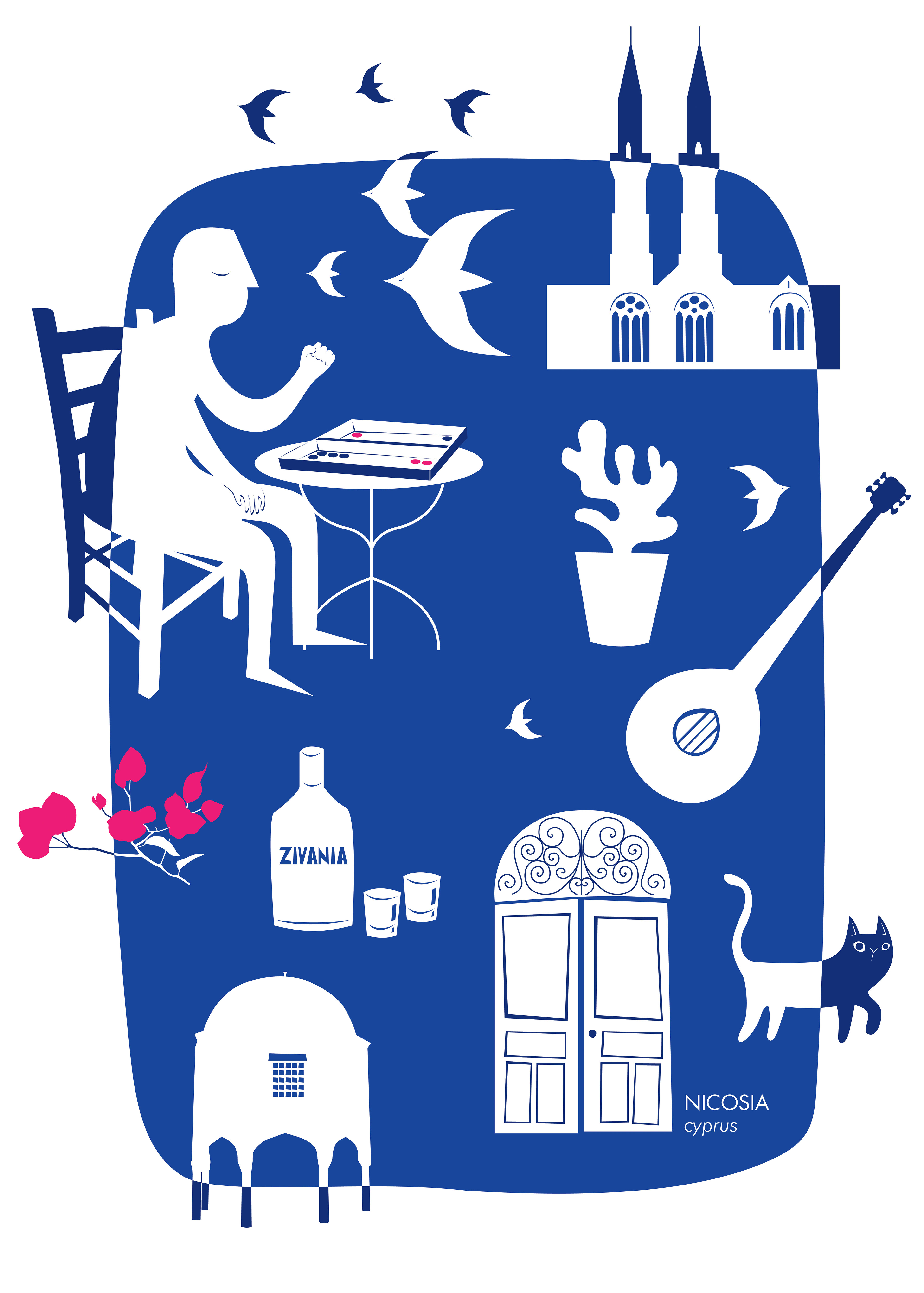The 20 posters from the first exhibition travelled and met the other 20 posters designed for Travellink Cyprus. Moreover, all the exhibition posters became card postals as a little gift to the people that visited the event. Consisting of the words “travel” and “ink”, Travellink is coming to travel you with colours and ink. Each designer/design studio created a poster based on their favourite city. The title of their poster has the same as the city they chose.